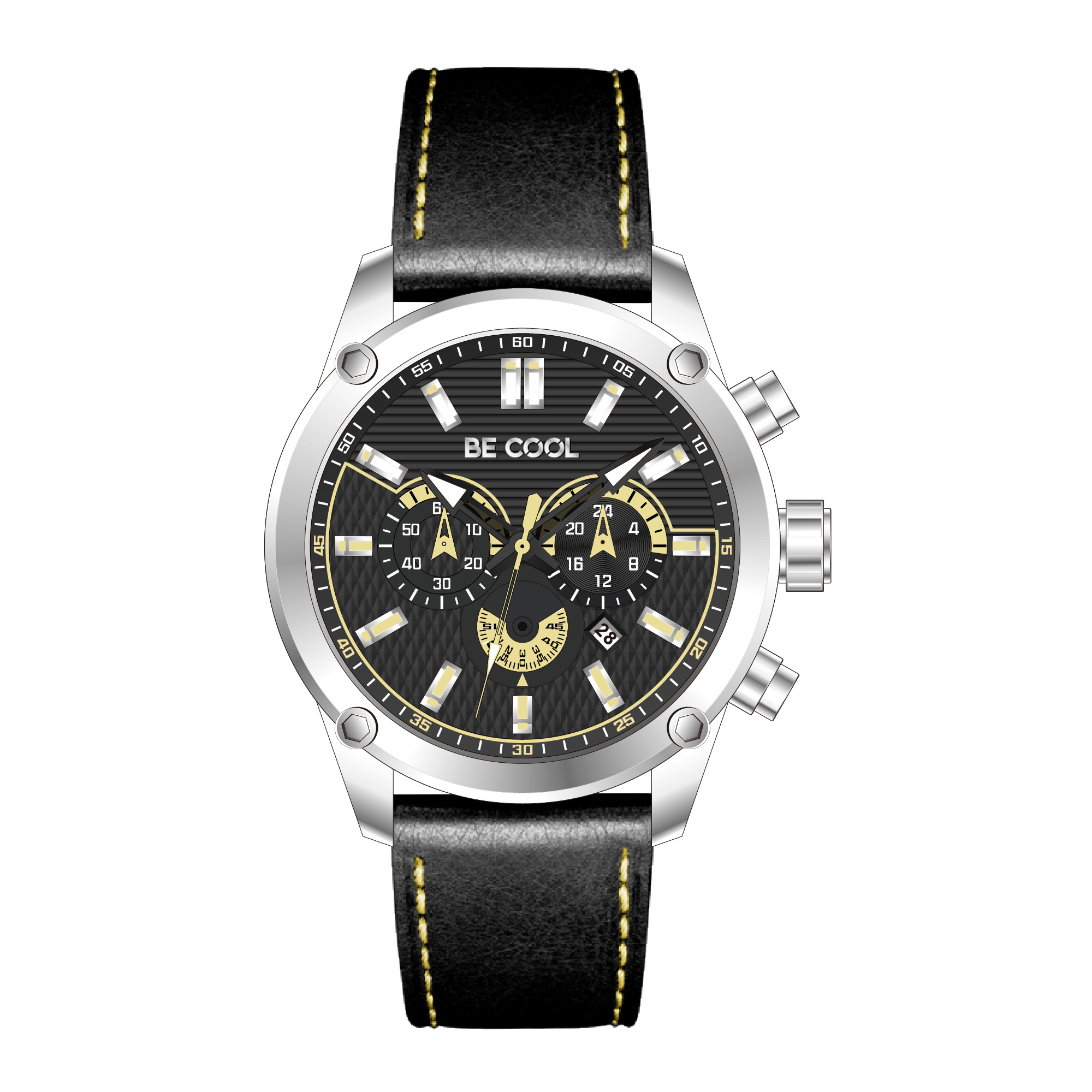 Chronograph | Silber mit Lederarmband – BE COOL