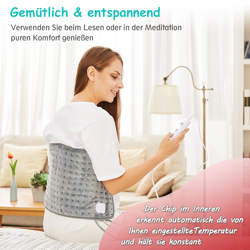 Ein vielseitiges Heizkissen, das durch Funktionalität und Komfort überzeugt. Mit einer großzügigen Größe von 60 × 30 cm bietet es eine optimale Wärmeabdeckung und eignet sich ideal für Rücken, Bauch, Beine oder andere Körperbereiche. Dank 3 individuell einstellbarer Heizstufen im Temperaturbereich von 47 bis 75 Grad lässt sich die Wärme perfekt an persönliche Bedürfnisse anpassen.