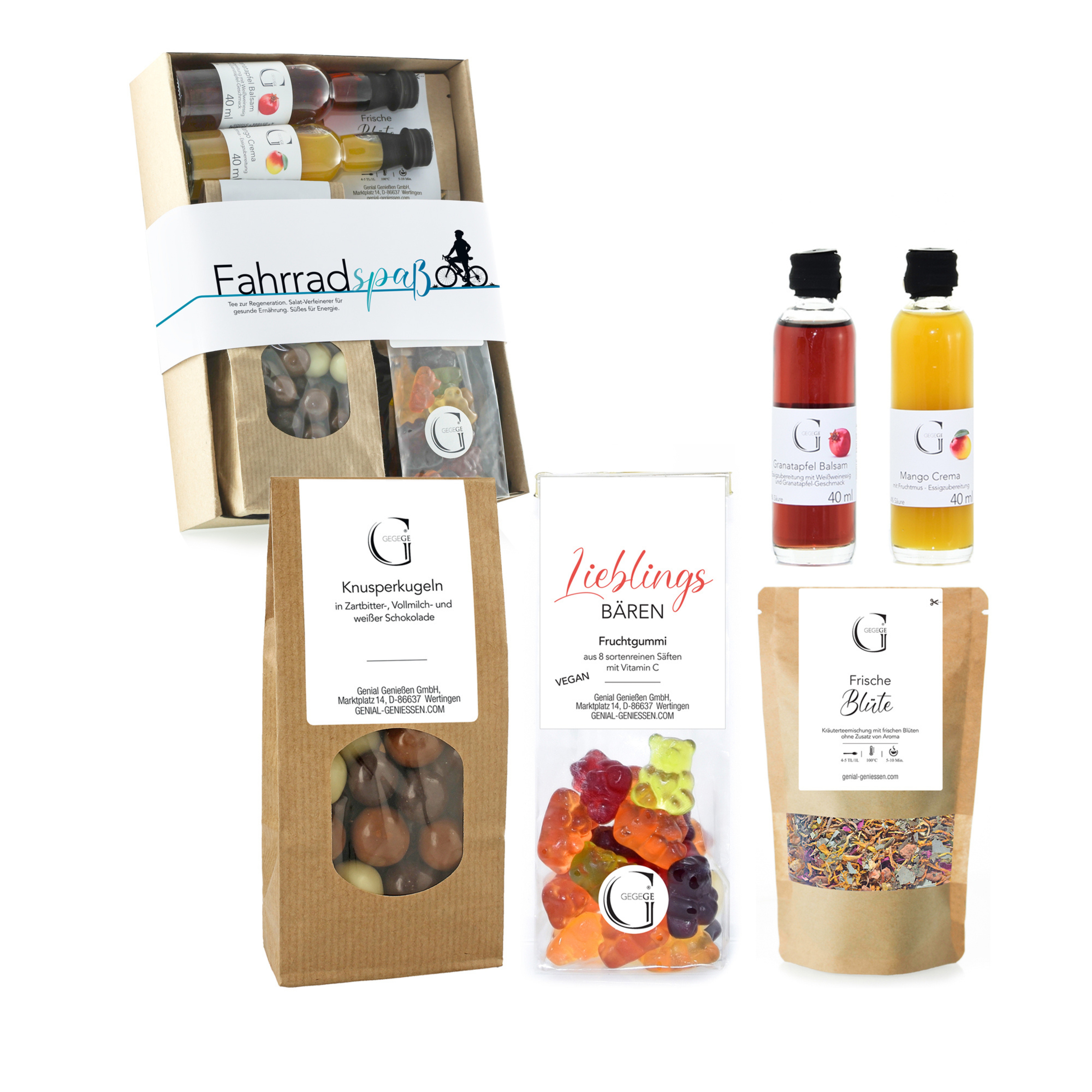 Ein genussvolles Geschenkset für Fahrradliebhaber, das jede Pause während einer Tour zu einem besonderen Erlebnis macht. Die ausgewogene Zusammenstellung aus fruchtigen, süßen und wohltuenden Komponenten sorgt für neue Energie und entspannte Momente unterwegs. Ideal für alle, die Aktivität und Genuss harmonisch miteinander verbinden möchten.