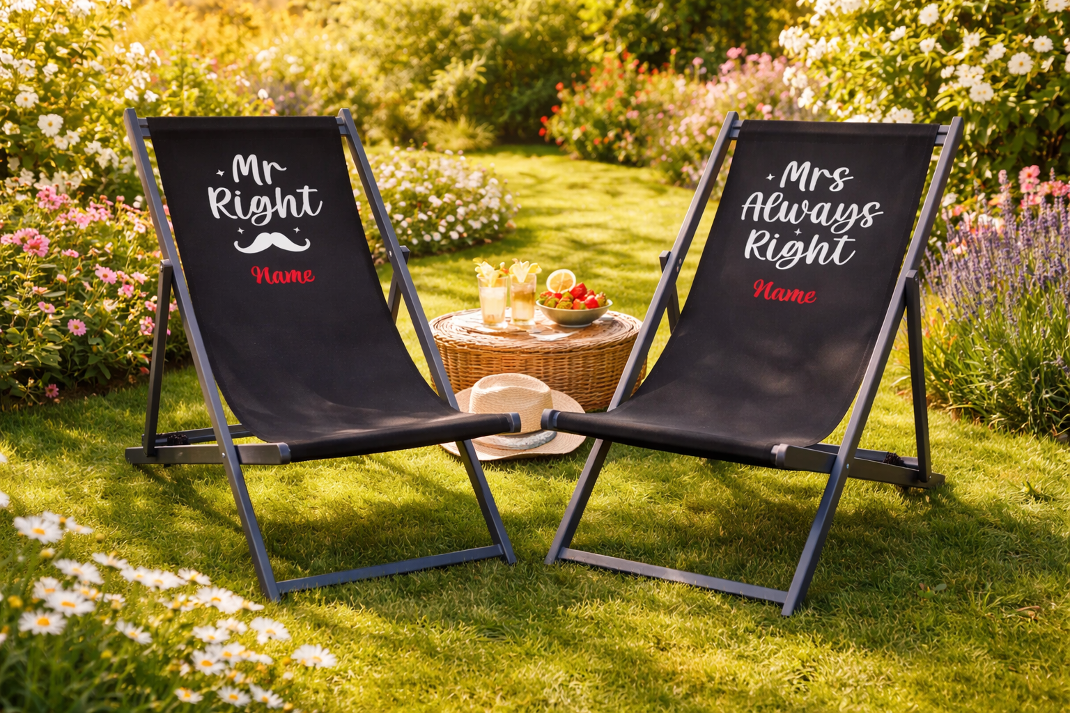 Liegestuhl-Set | personalisierbar – MR. RIGHT & MRS. RIGHT