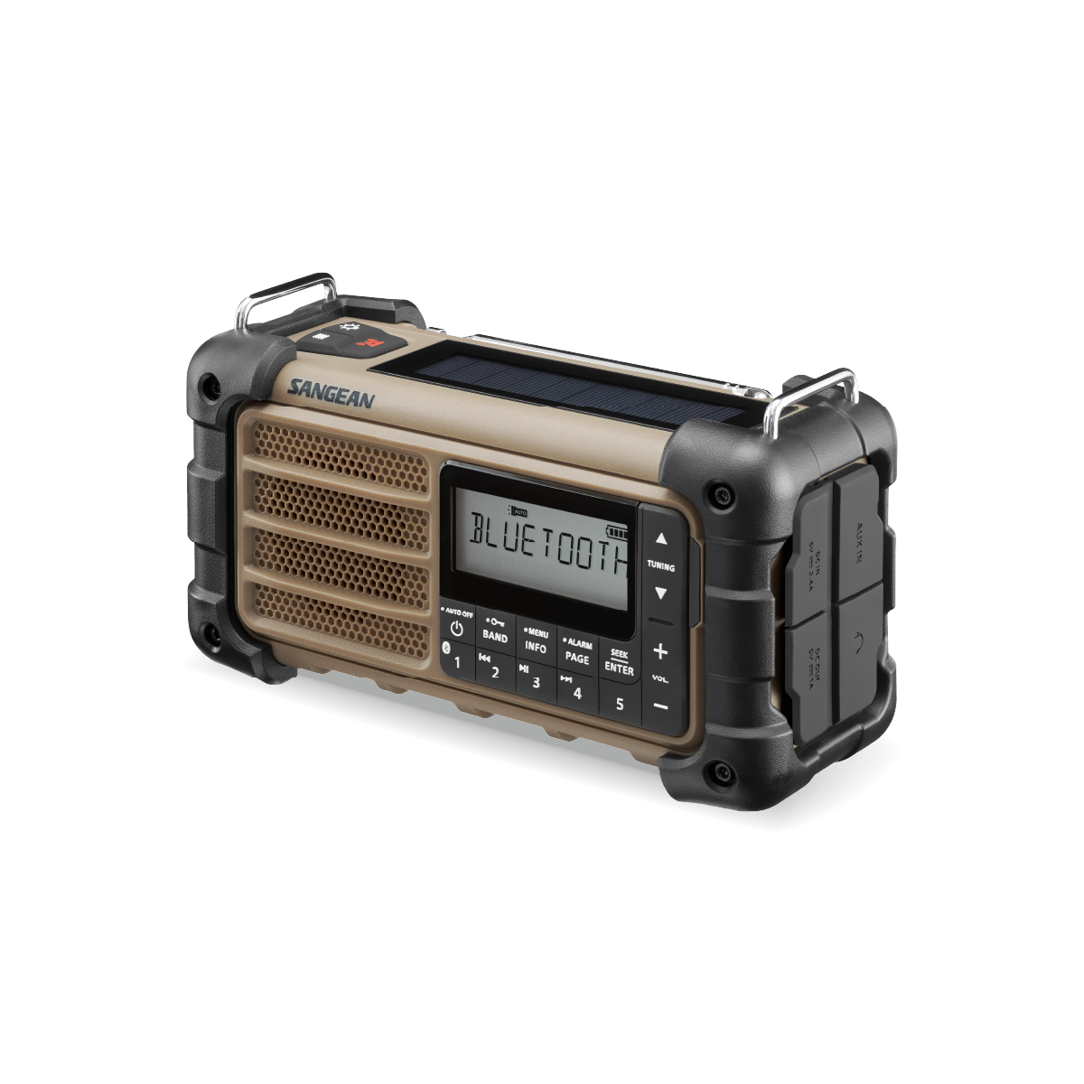 - 3-Wege-Stromversorgung: Solarpanel, Handkurbel-Dynamo und DC/USB-Einspeisung