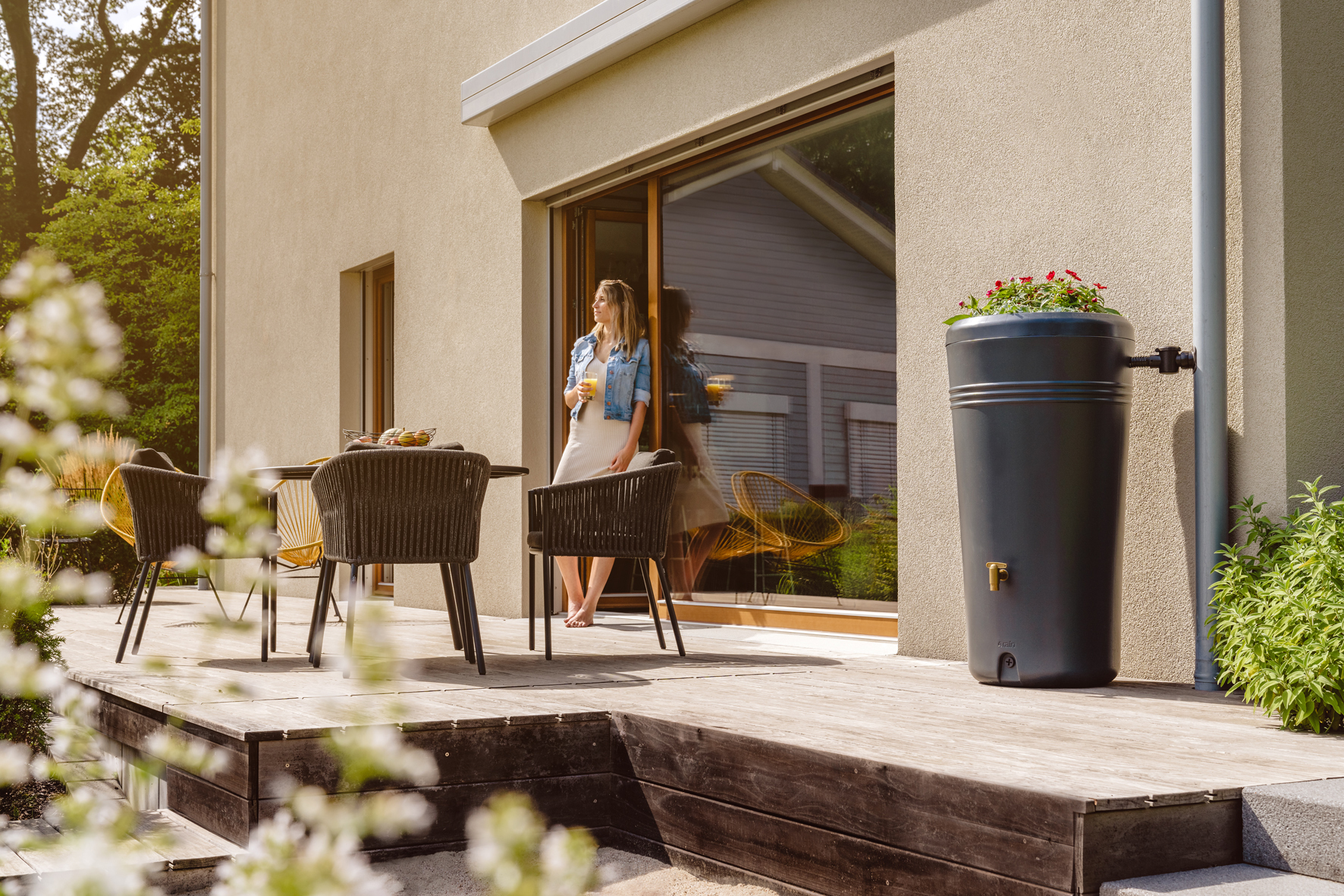 - 2-in-1 Funktion: Regenwasserspeicher und dekoratives Gestaltungselement