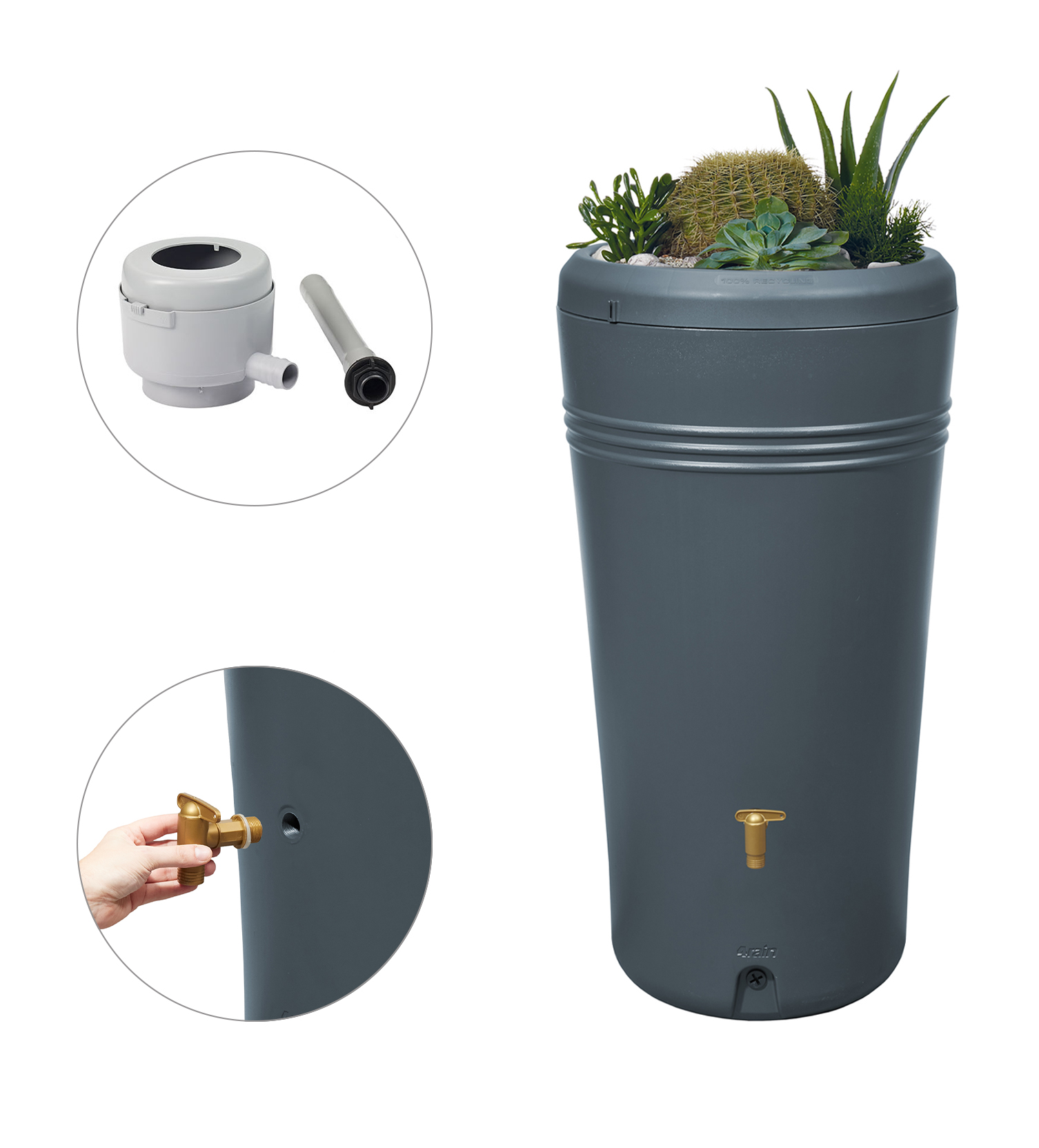 Regentonne Komplett-Set | Azura 230 L graphite grey