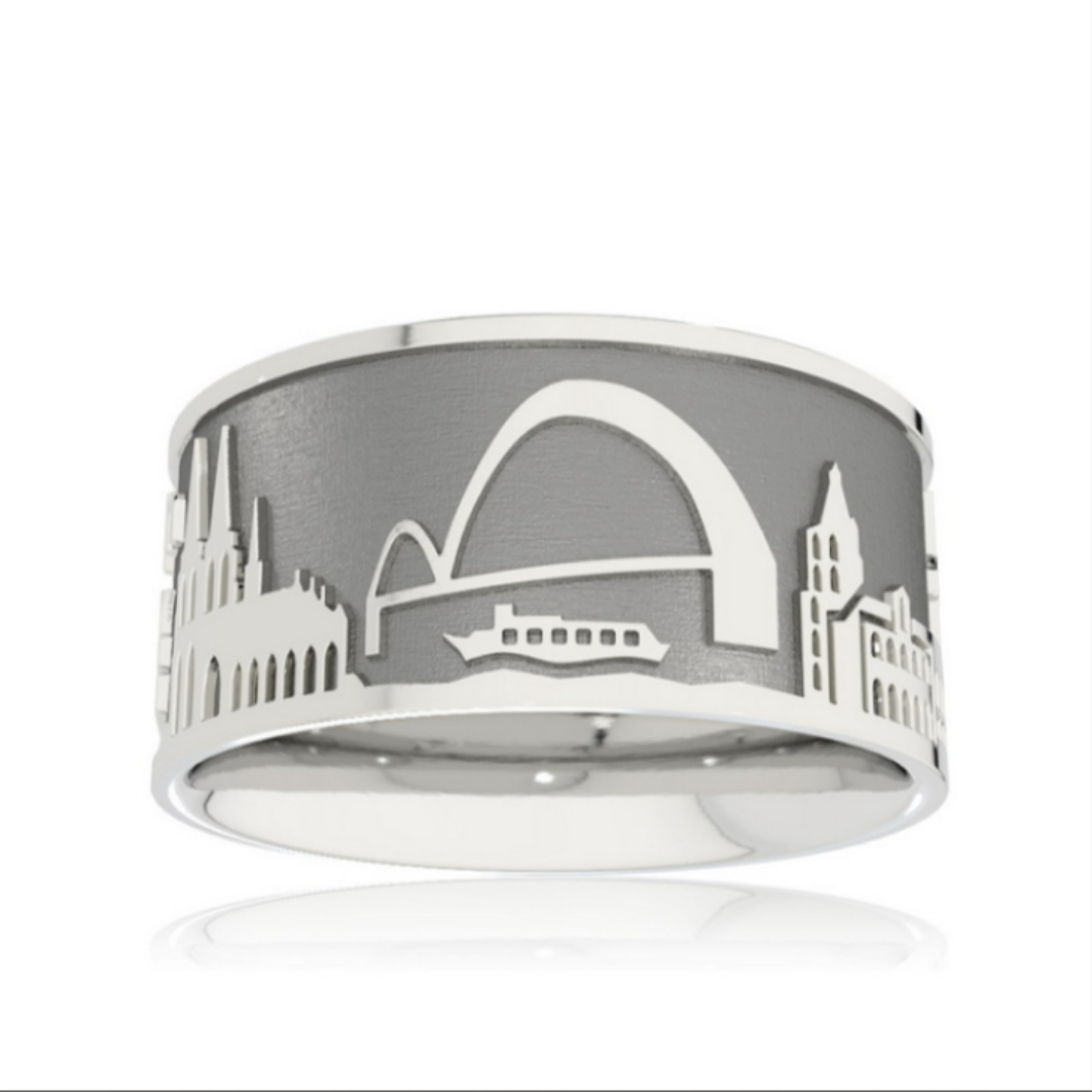 Detailreich zieren ausgewählte Wahrzeichen der Stadt Köln die Oberfläche des Rings. Der Kölner Dom mit seinen markanten Türmen, die Hohenzollernbrücke, eine charakteristische romanische Kirche der Altstadt sowie der Rhein formen die Silhouette. Abgerundet wird das Design durch den Schriftzug „KÖLN“.