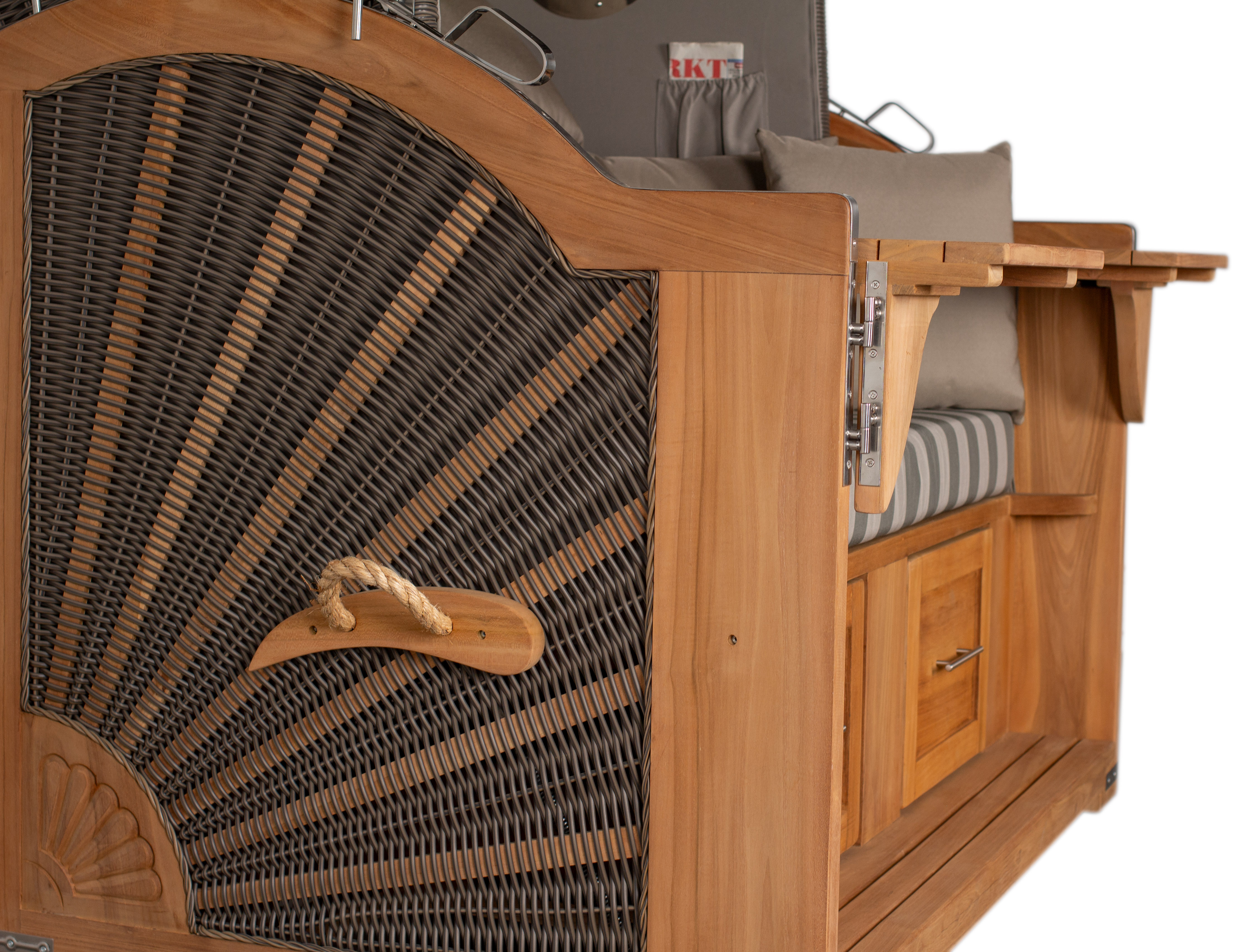 Holen Sie sich das exklusive Nordsee-Gefühl direkt nach Hause. Der Strandkorb DÜNENKÖNIG XL vereint meisterhafte Verarbeitung mit zeitloser Eleganz. Gefertigt aus edlem, wetterfestem Teak-Holz und einem fein gearbeiteten Geflecht, ist er das optische Highlight für Ihren Garten, die Terrasse oder den Wintergarten.
