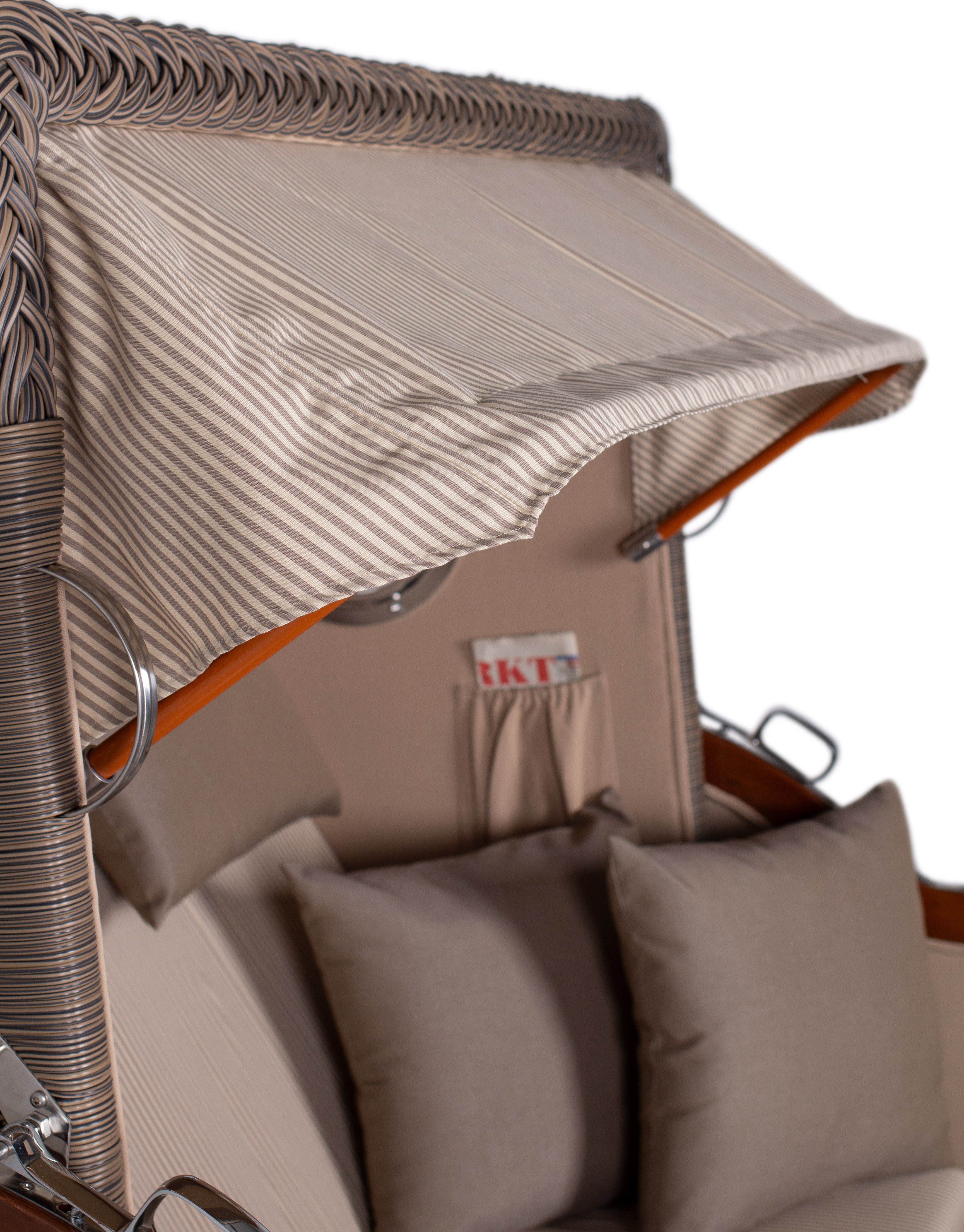 Das Komplettset wird inklusive Premium Schutzhaube geliefert, die den Strandkorb zuverlässig vor Witterungseinflüssen schützt. Das integrierte Liftersystem erleichtert das Verstellen und Anheben des Oberkorbs und sorgt für eine komfortable Handhabung.