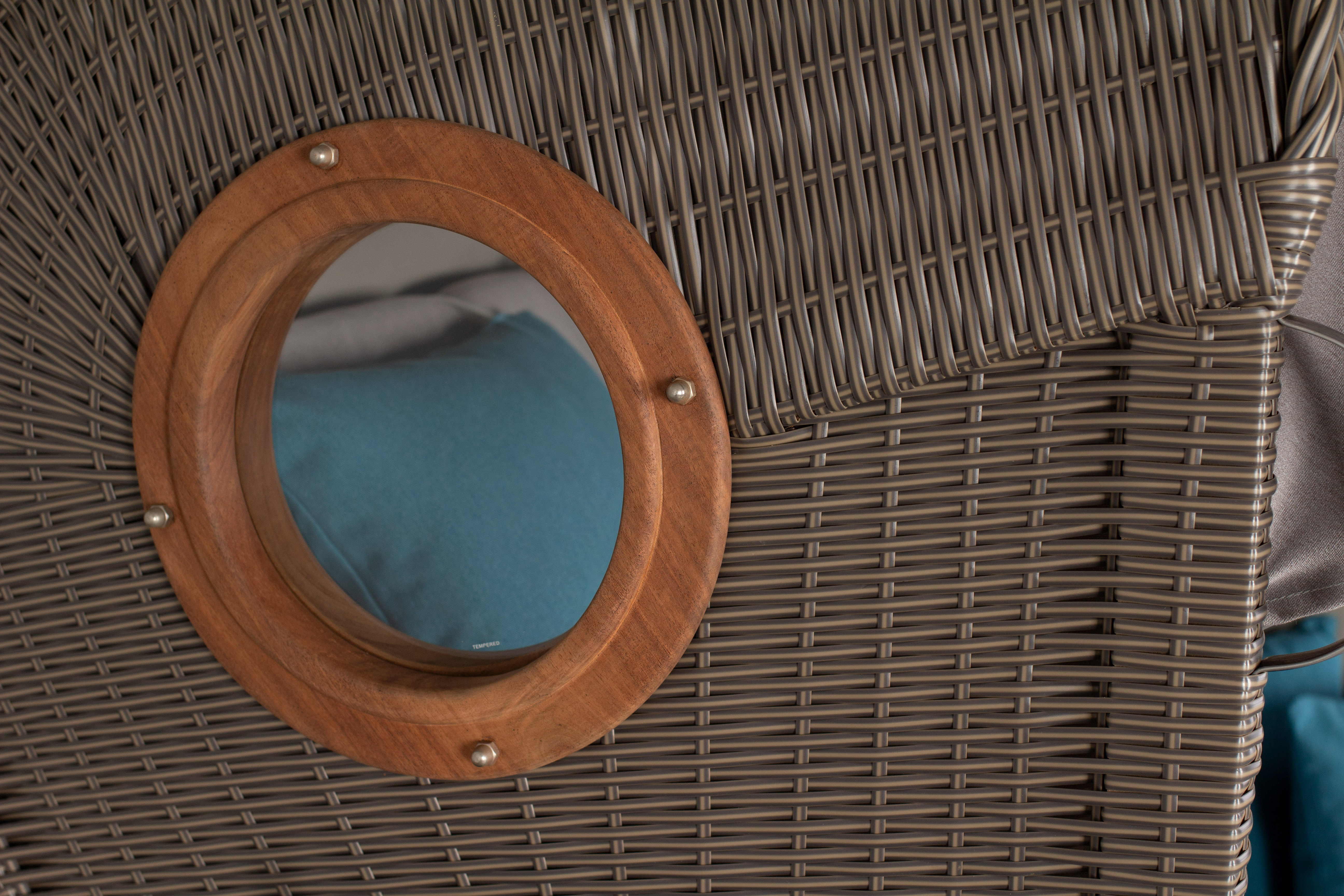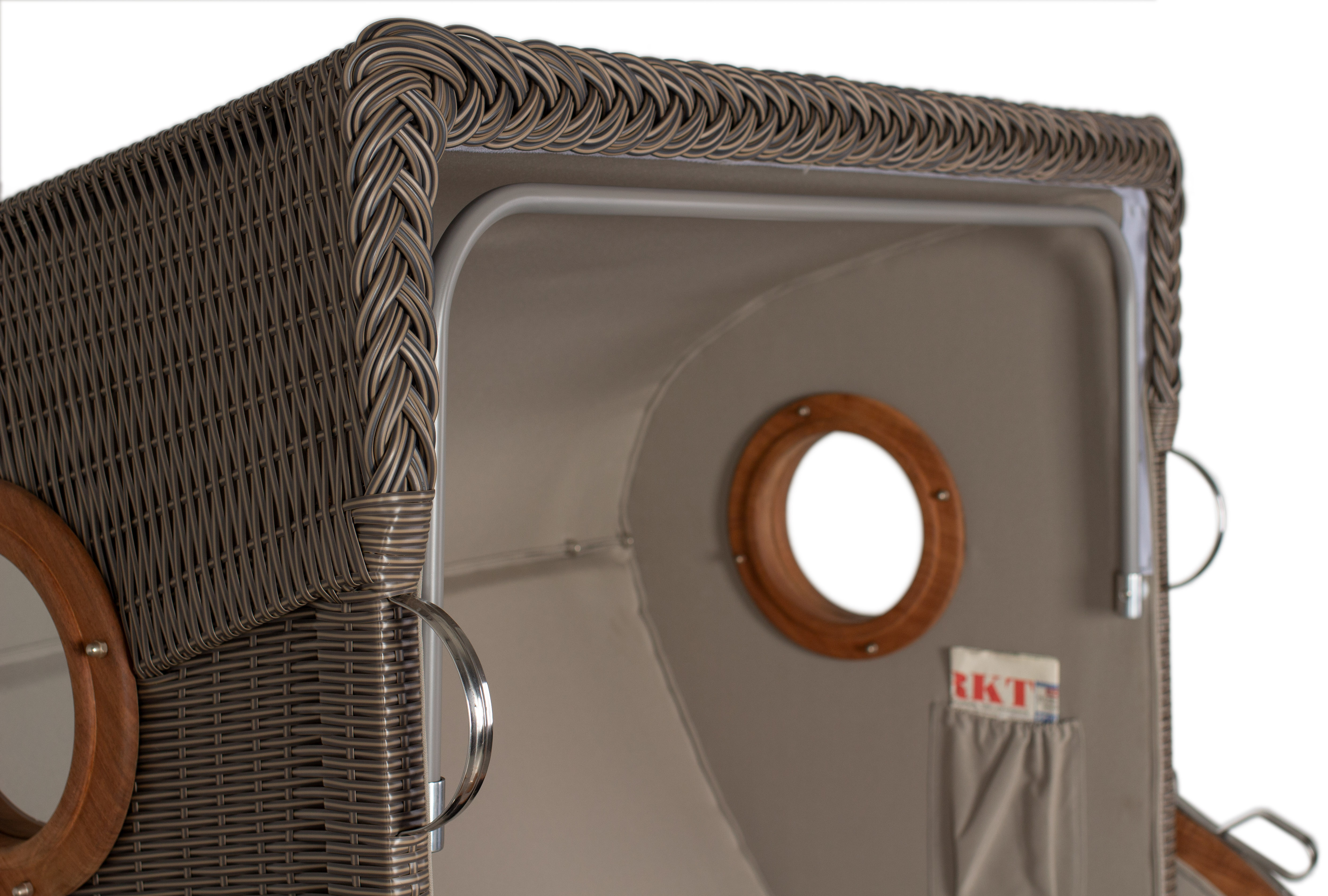 Zwei Bullaugen mit Rahmen aus Akazie lassen Licht herein und geben den klassischen Look.