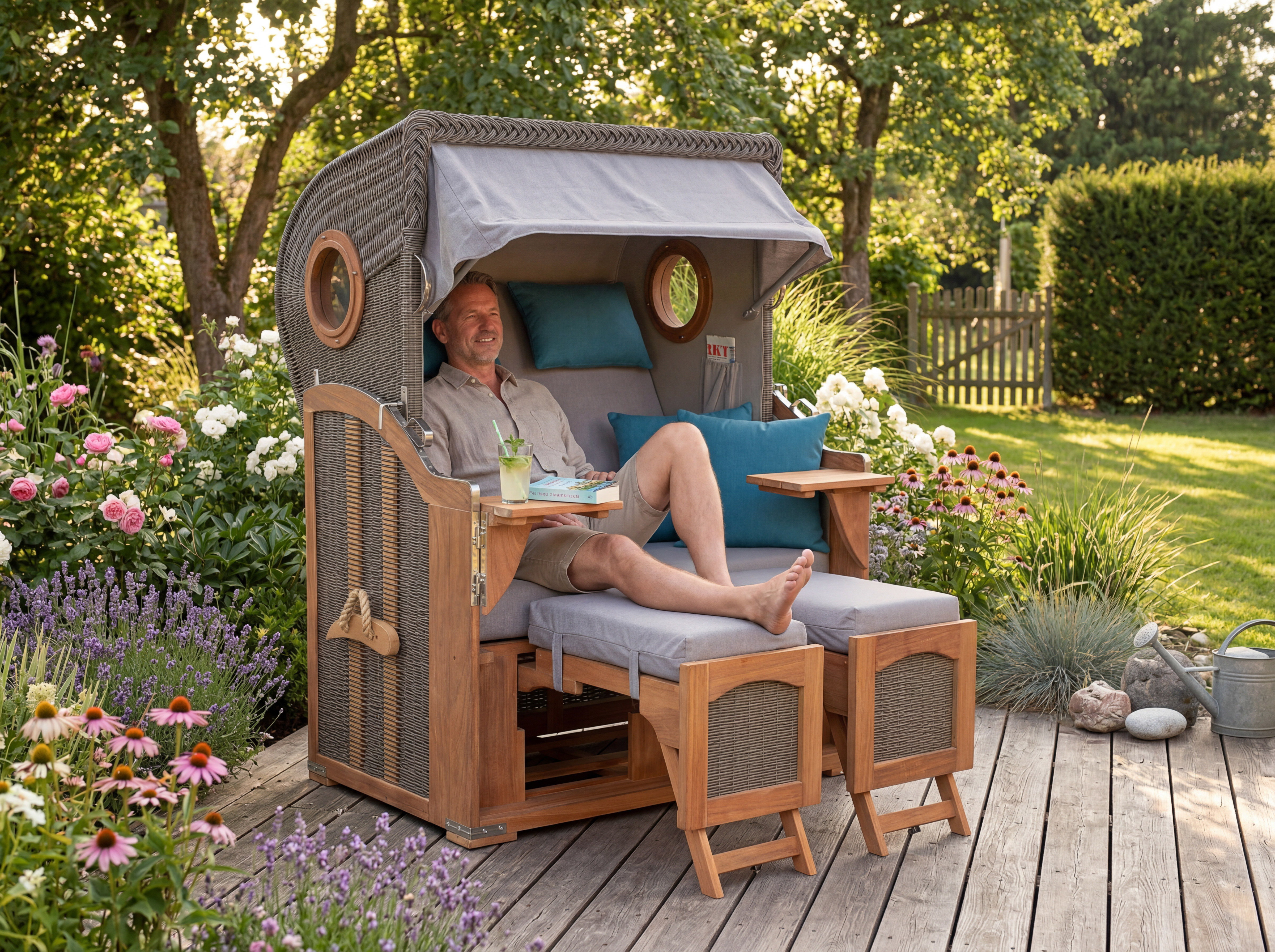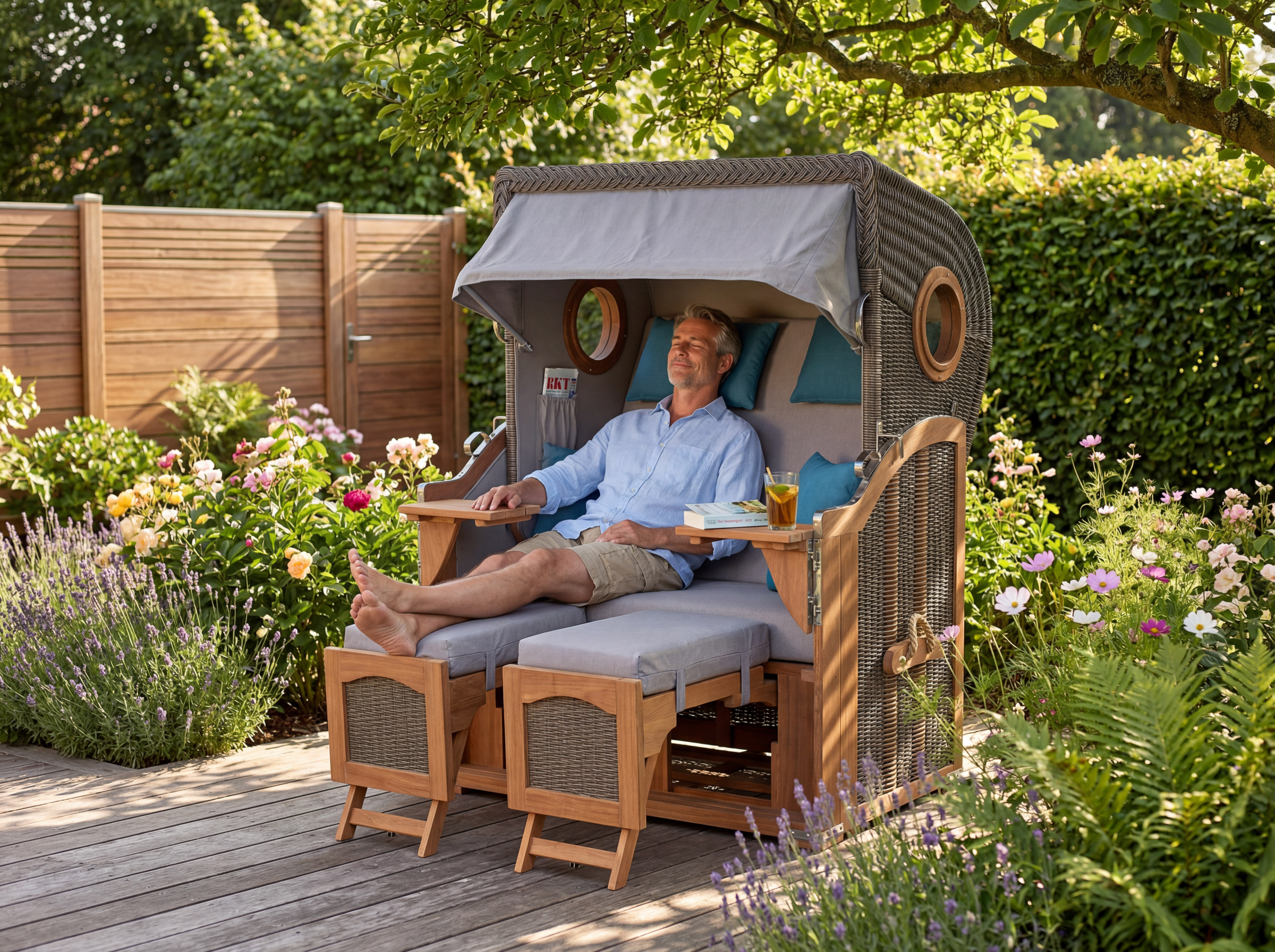 Genieße Deinen Urlaubsmoment zu Hause – mit dem Strandkorb Mellum 2‑Sitzer aus edler Akazie und dunkelbraunem PE‑Geflecht. Zeitlos schön, wetterfest und komfortabel – ideal für Garten, Terrasse oder Wintergarten.