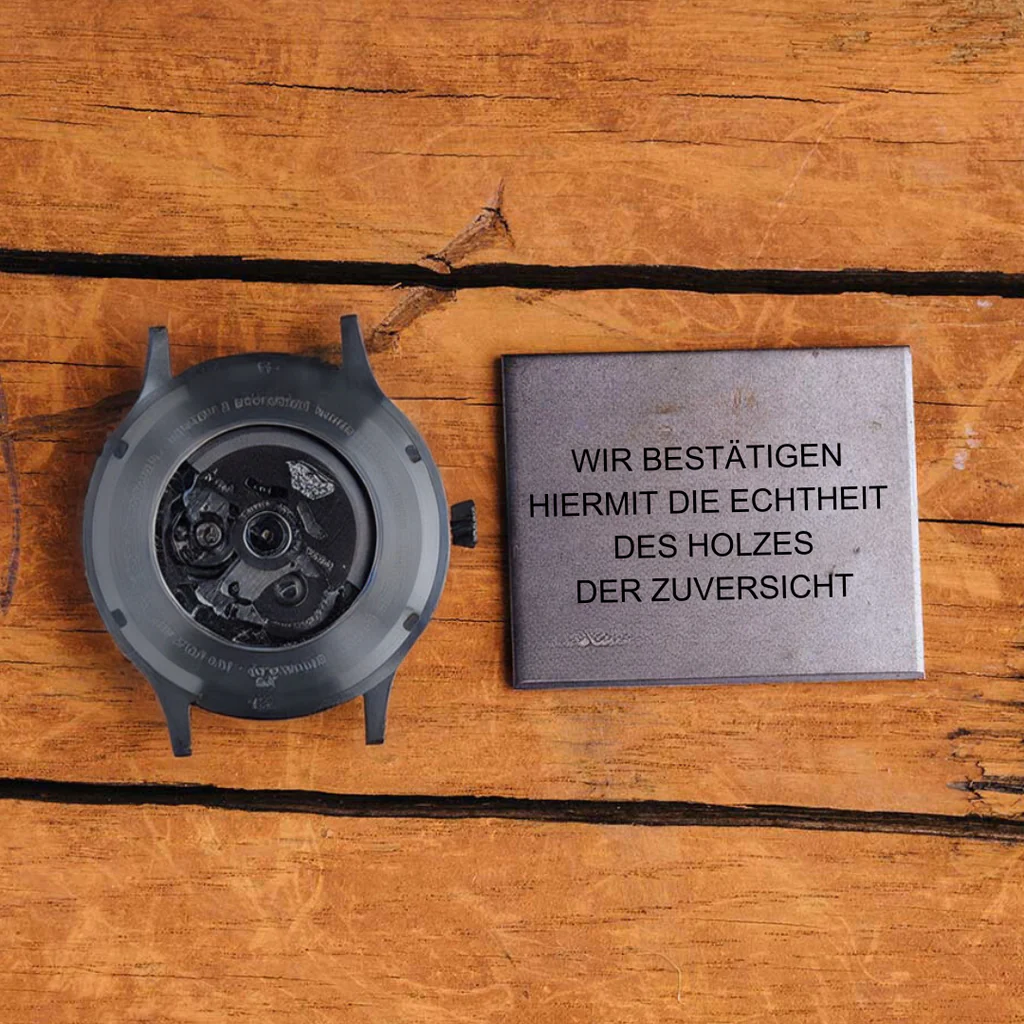 Die Automatikuhr aus dem Holz der „Zuversicht“ verbindet maritimes Erbe mit zeitloser Eleganz. Gefertigt aus originalem Eichenholz des historischen Zweimastseglers, der 1905 in Dänemark vom Stapel lief und später als Jugendsegelschiff in Kiel diente, trägt jede Uhr über ein Jahrhundert Seefahrtsgeschichte in sich. Mechanisch angetrieben und handgefertigt, steht sie für Präzision, Charakter und Herkunft. Ein Teil des Verkaufserlöses unterstützt den Verein Jugendsegeln in Kiel – dort, wo die „Zuversicht“ einst vor Anker lag.