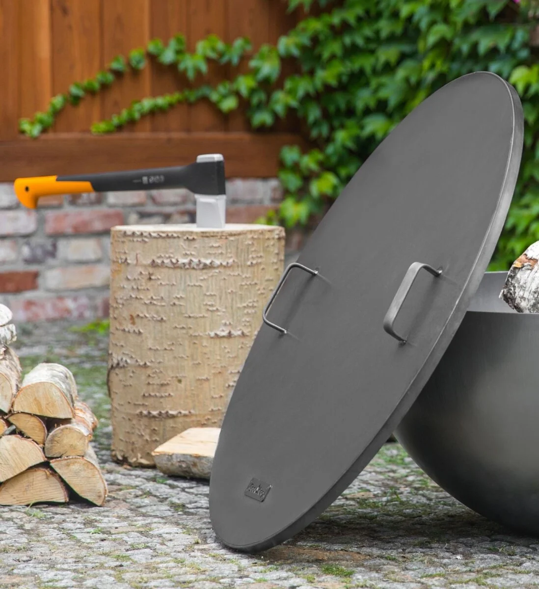 Dank des umlaufenden Randes liegt der Deckel stabil auf der Feuerschale und bleibt auch bei Wind sicher an Ort und Stelle. Zudem erleichtern zwei Griffe das Anheben und Platzieren des Deckels.