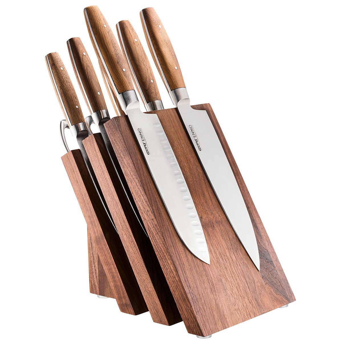 - edler Design Magnet-Messerblock aus hochwertigem Walnussholz