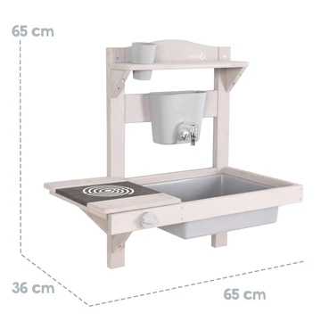 Die Matschküche ist das ideale Spielzeug, um die Fantasie der Kinder anzuregen und stundenlangen Spielspaß zu garantieren. Diese stilvolle, graue Outdoor-Spielküche ist aus nachhaltigem, FSC-zertifiziertem Massivholz gefertigt und bietet kleinen Küchenchefs die Möglichkeit, sich kreativ auszutoben.