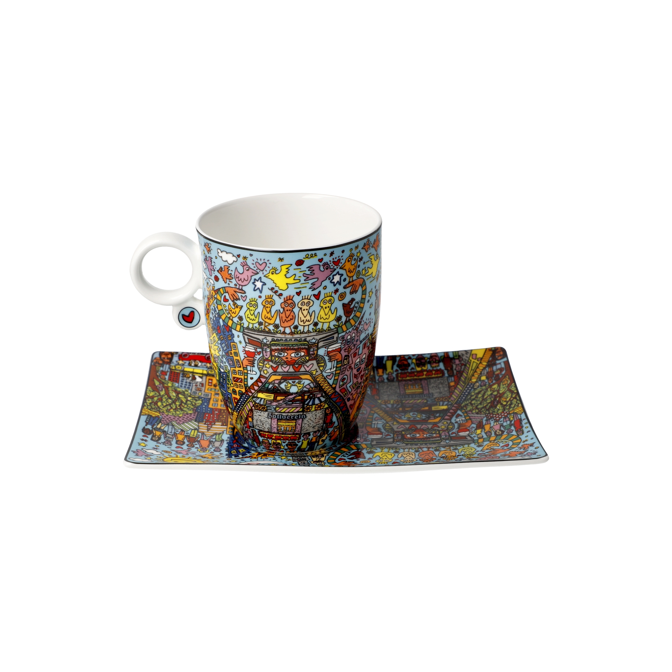 Mit der Künstlertasse „Remember those Cool Coal Days“ hat James Rizzi der Stadt Essen ein ganz besonderes Denkmal gesetzt. In seinem unverwechselbaren Pop-Art-Stil fängt der New Yorker Künstler das bunte Leben der Ruhrgebietsstadt ein – mit viel Charme, Humor und Liebe zum Detail.